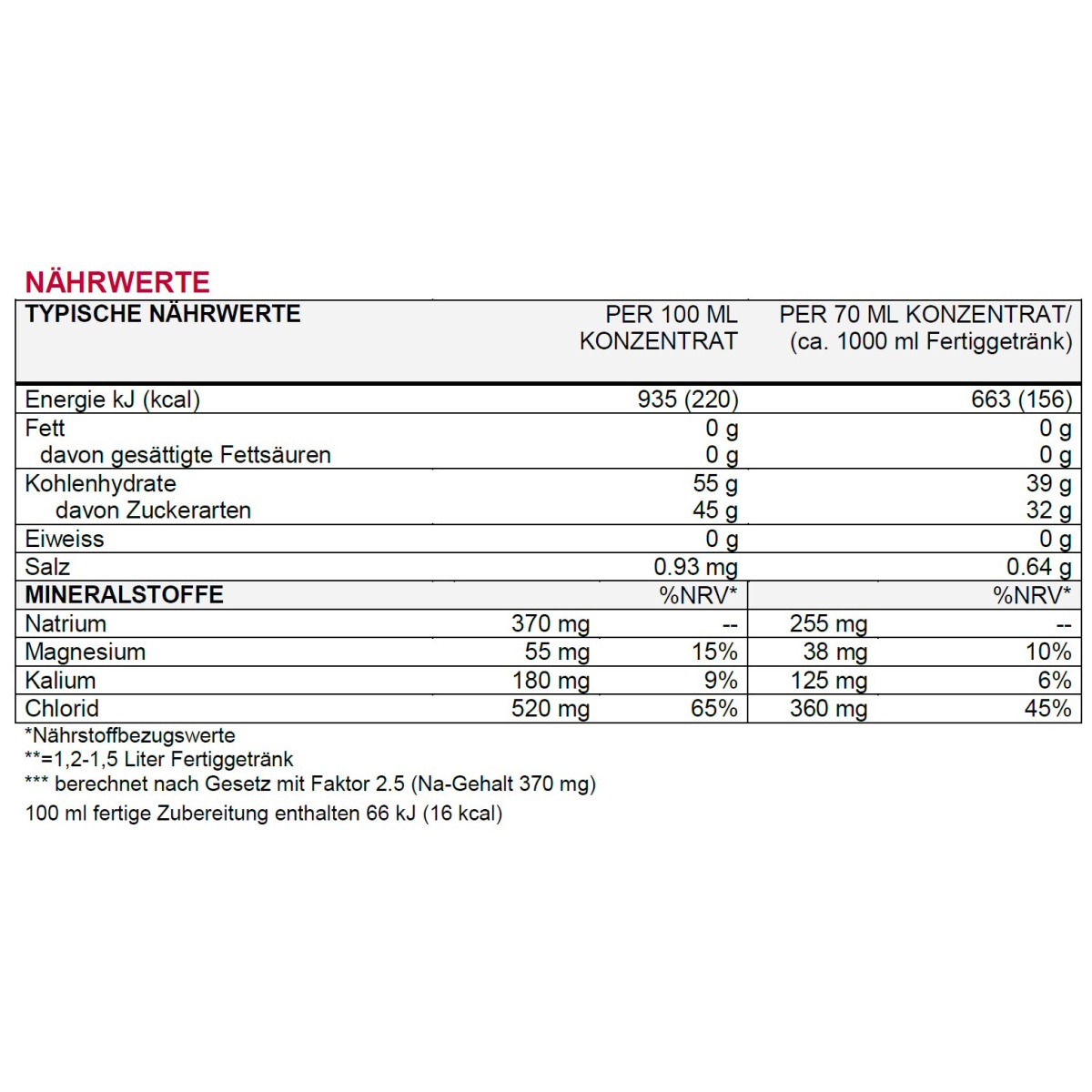 • das Konzentrat wird wie Sirup verdünnt, liefert Energie und Mineralstoffe