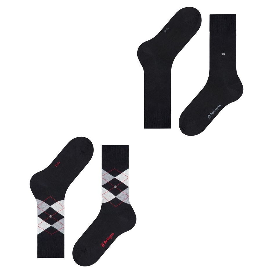 • 2-Pack = 1 Paar Argyle Strümpfe + 1 Paar Uni Strümpfe
