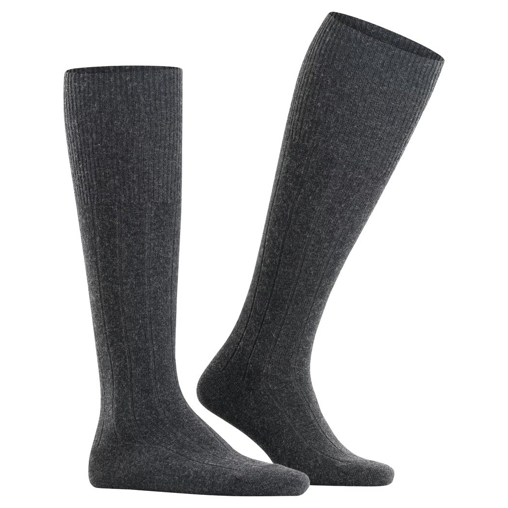 Falke Kniestrümpfe Lhasa Rib (klimaregulierende Merinowolle) anthrazitgrau Herren - 1 Paar