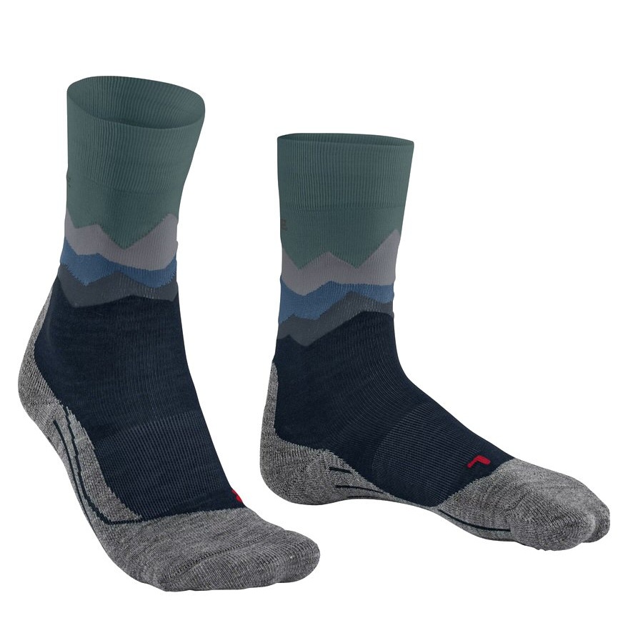 • durch die in den Schaft eingearbeitete Bergsilhouette in verschiedenen Farbschattierungen ist die Wandersocke ein echter Hingucker