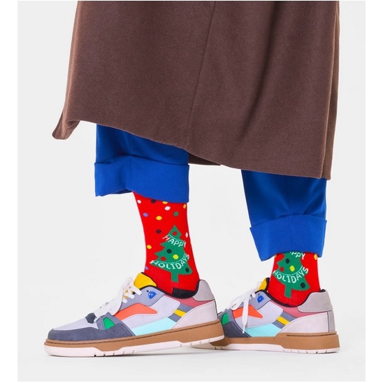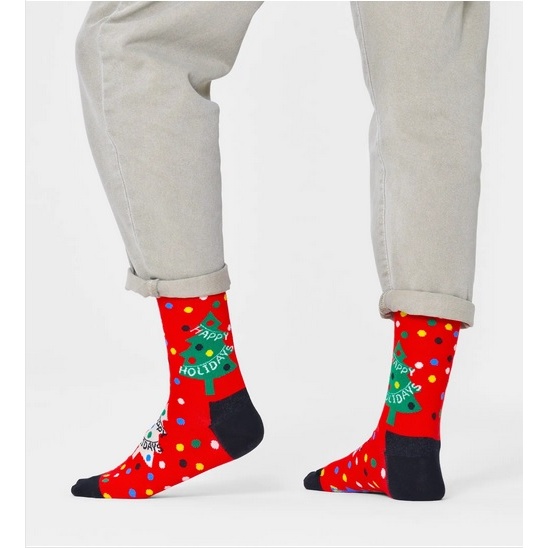 Happy Socks Tagessocke Crew Happy Holidays (Weihnachtsbaum) rot - 1 Paar