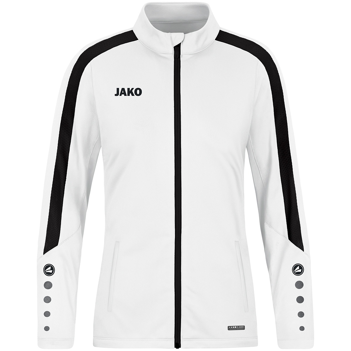 • der auffällige Kontrasteinsatz in Wabenstruktur wird durch die neue Position der JAKO Dots im Ärmelbereich unterstützt und lässt die JAKO Polyesterjacke Power sehr dynamisch wirken