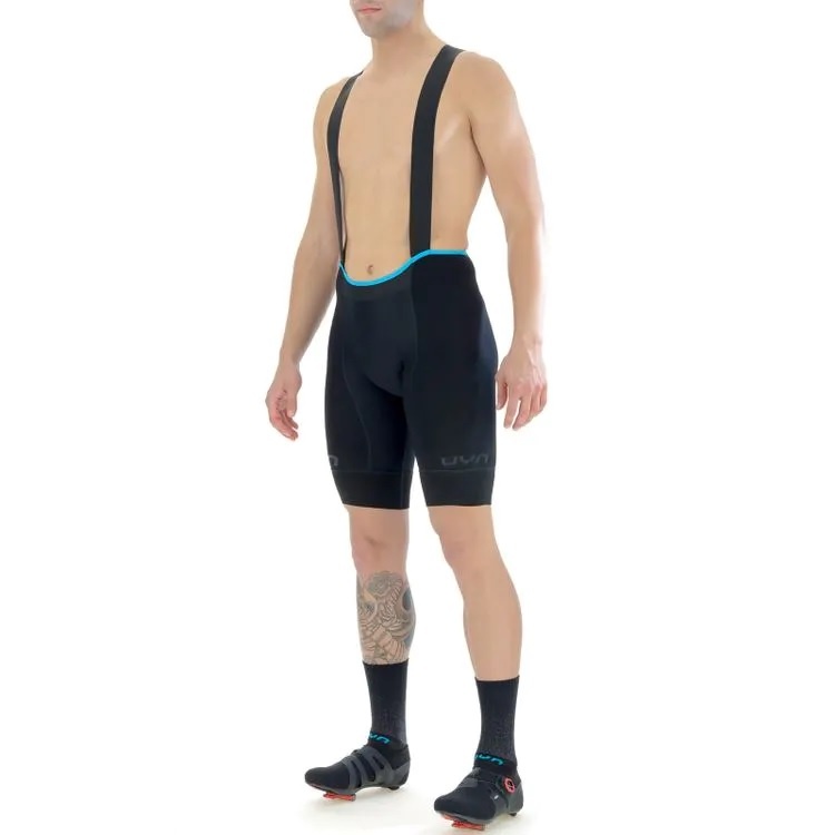 UYN Fahrrad-Shirt Alpha Kurzarm blau/grau HerrenUYN Fahrrad-Trägerhose Ridemiles (Nahtlos) schwarz HerrenUYN Fahrrad-Trägerhose Ridemiles (Nahtlos) schwarz/gelb HerrenUYN Bikesocke Aero Cycling (leicht, schnelltrocknend) weiss/schwarz Herren - 1 Paar
