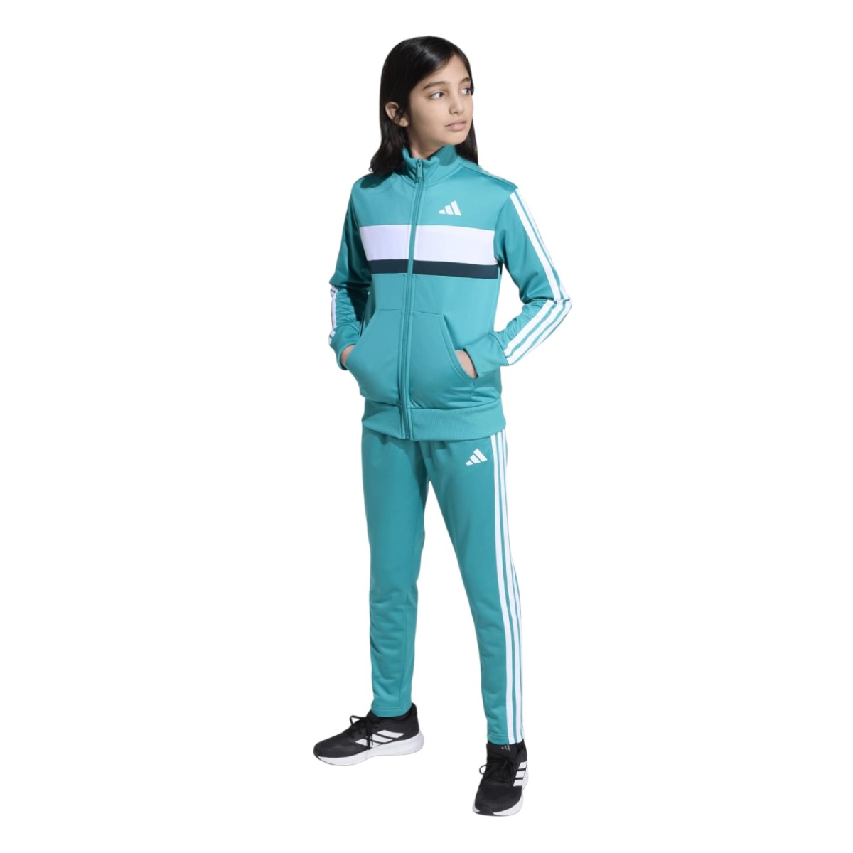 adidas Trainingsanzug Seasonal Essentials Tiberio 3-Streifen tealblau Kinder