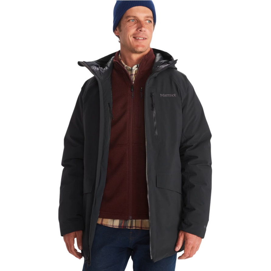• Für diese Jacke hat Marmot die Eigenschaften einer hochleistungsfähigen 2-lagigen GORE-TEX®-Shell mit denen einer isolierenden 700er Daunenfüllung kombiniert – getapte Nähte sorgen außerdem für einen rundum wasser- und winddichten Komfort