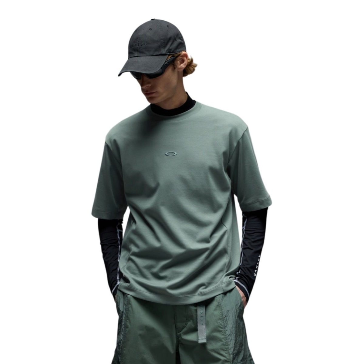 • Oakley-Logostickerei auf der Brustmitte