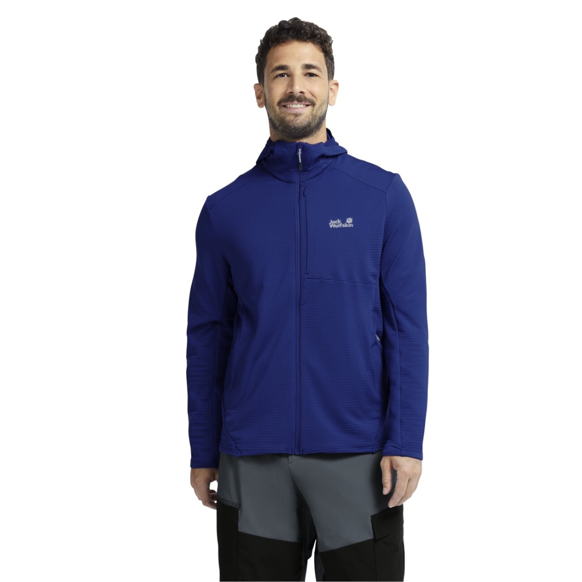 Jack Wolfskin Fleecejacke Litestride Hooded Full Zip (mit Kapuze, elastisches Material) orchidblau Herren