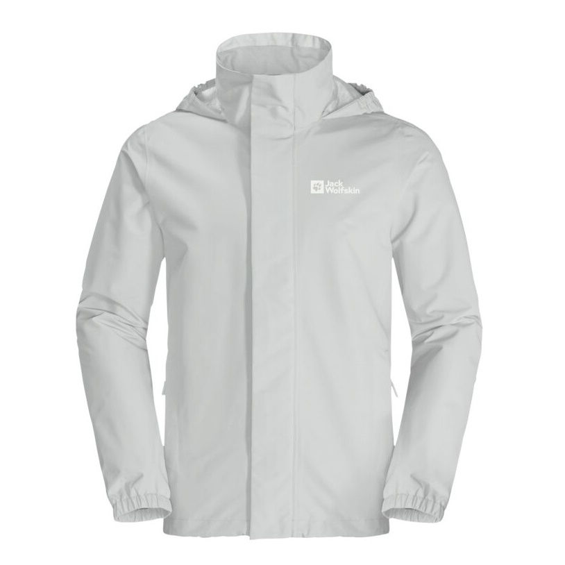 Jack Wolfskin Regenjacke Stormy Point 2-Lagen 2024 (Wetterschutzjacke, wasserdicht, winddicht) hellgrau Herren