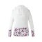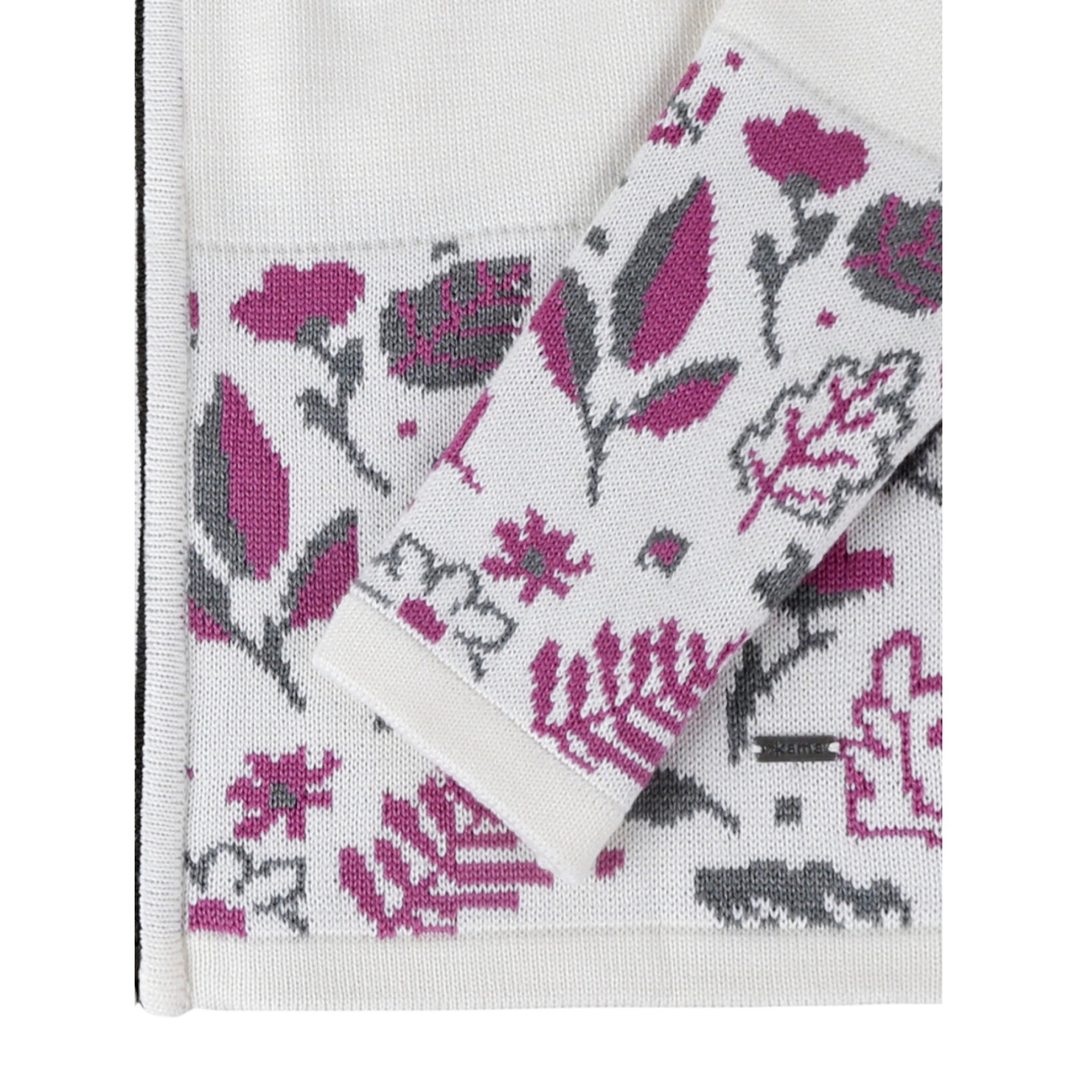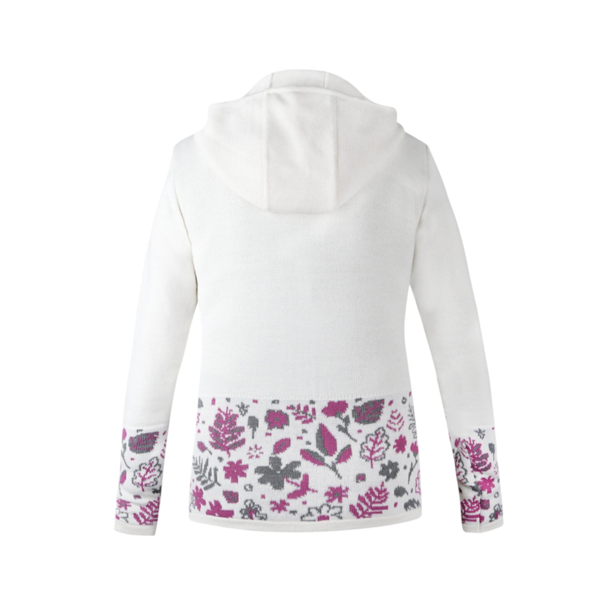 • der einzigartige Kapuzenpullover für Damen ist am unteren Rand des Körpers und an den Ärmeln mit einem Blumenmotiv verziert.
