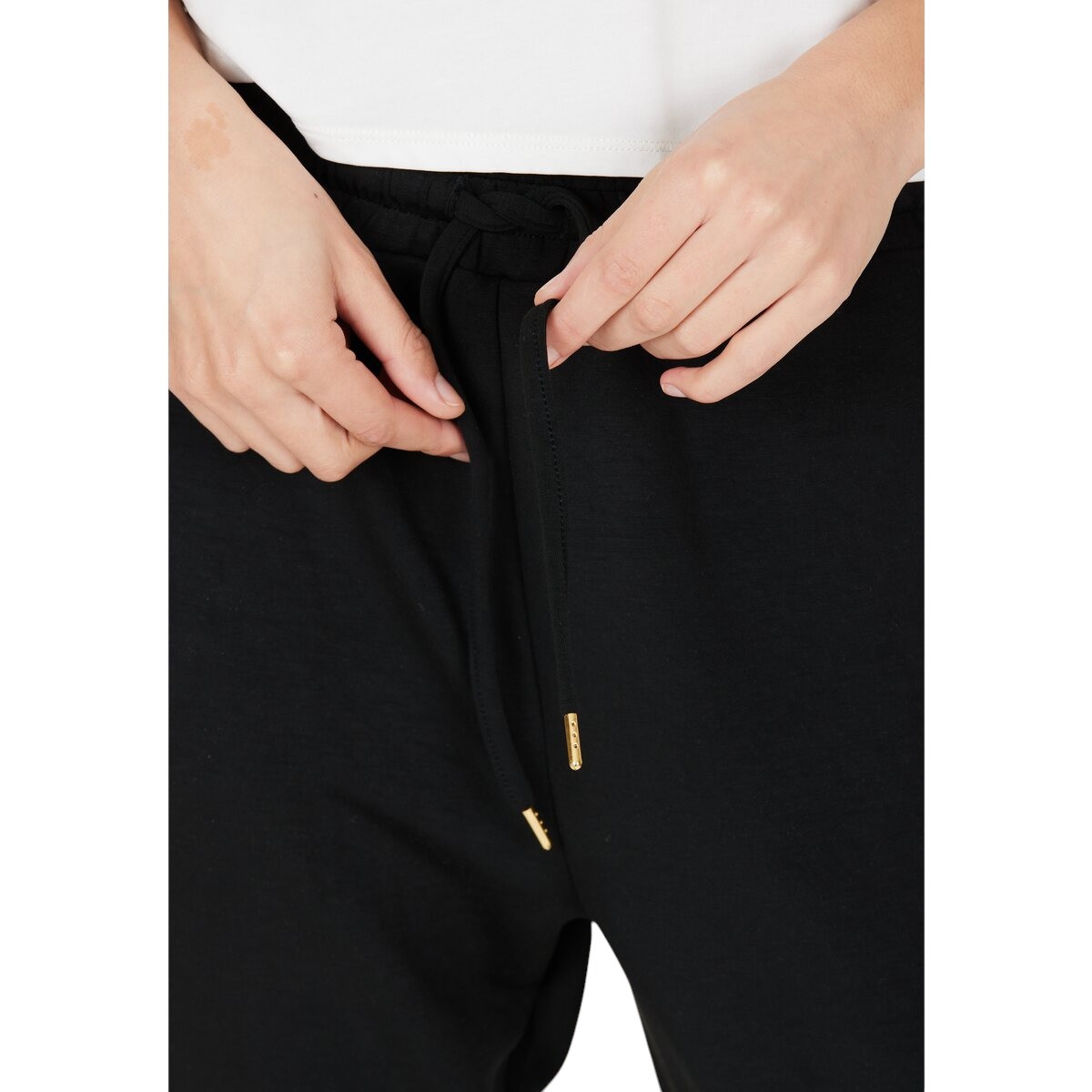 • dehnbund mit Kordelzug gibt eine bequeme Passform
