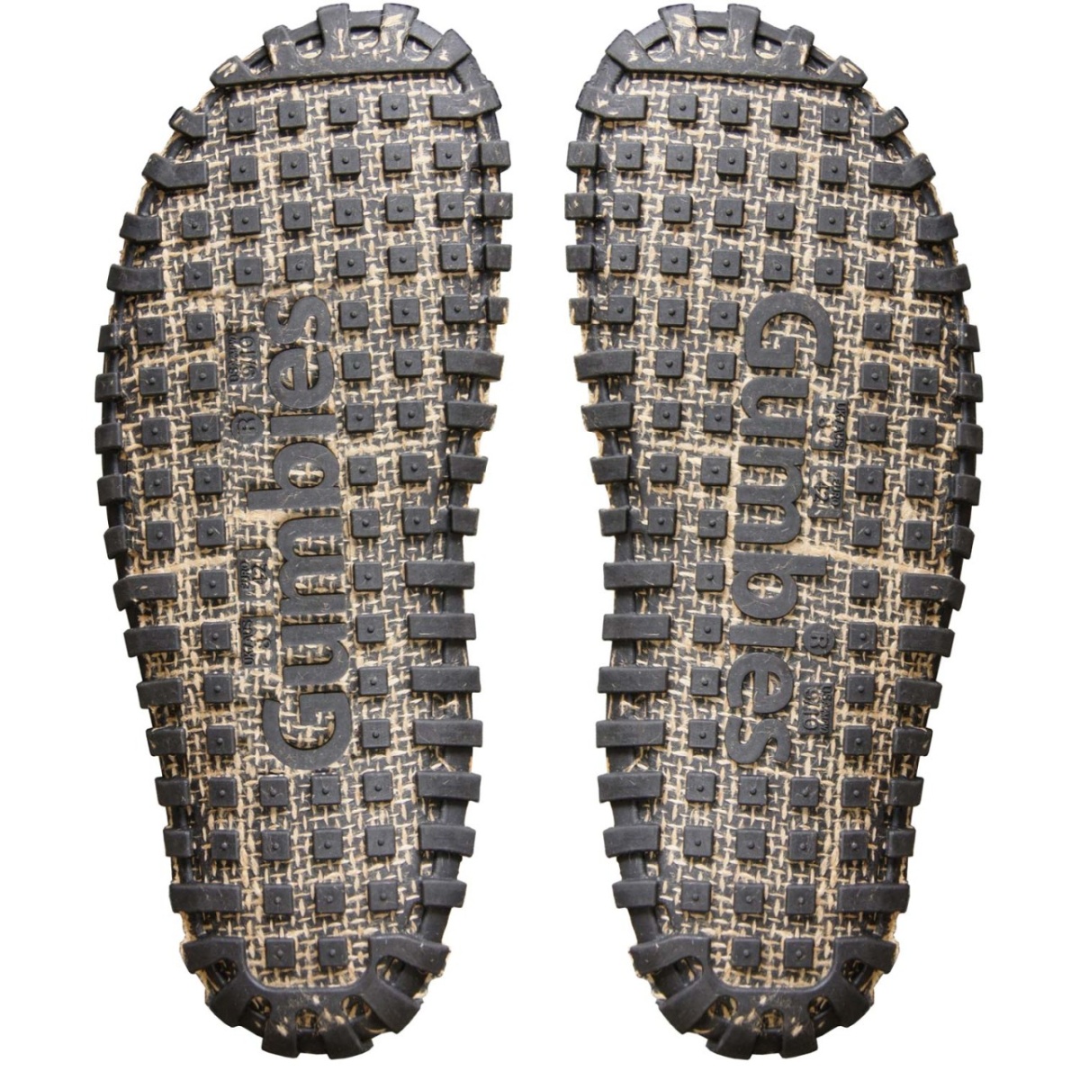 • mit Jute verschmolzene Sohle aus recyceltem Kautschuk
