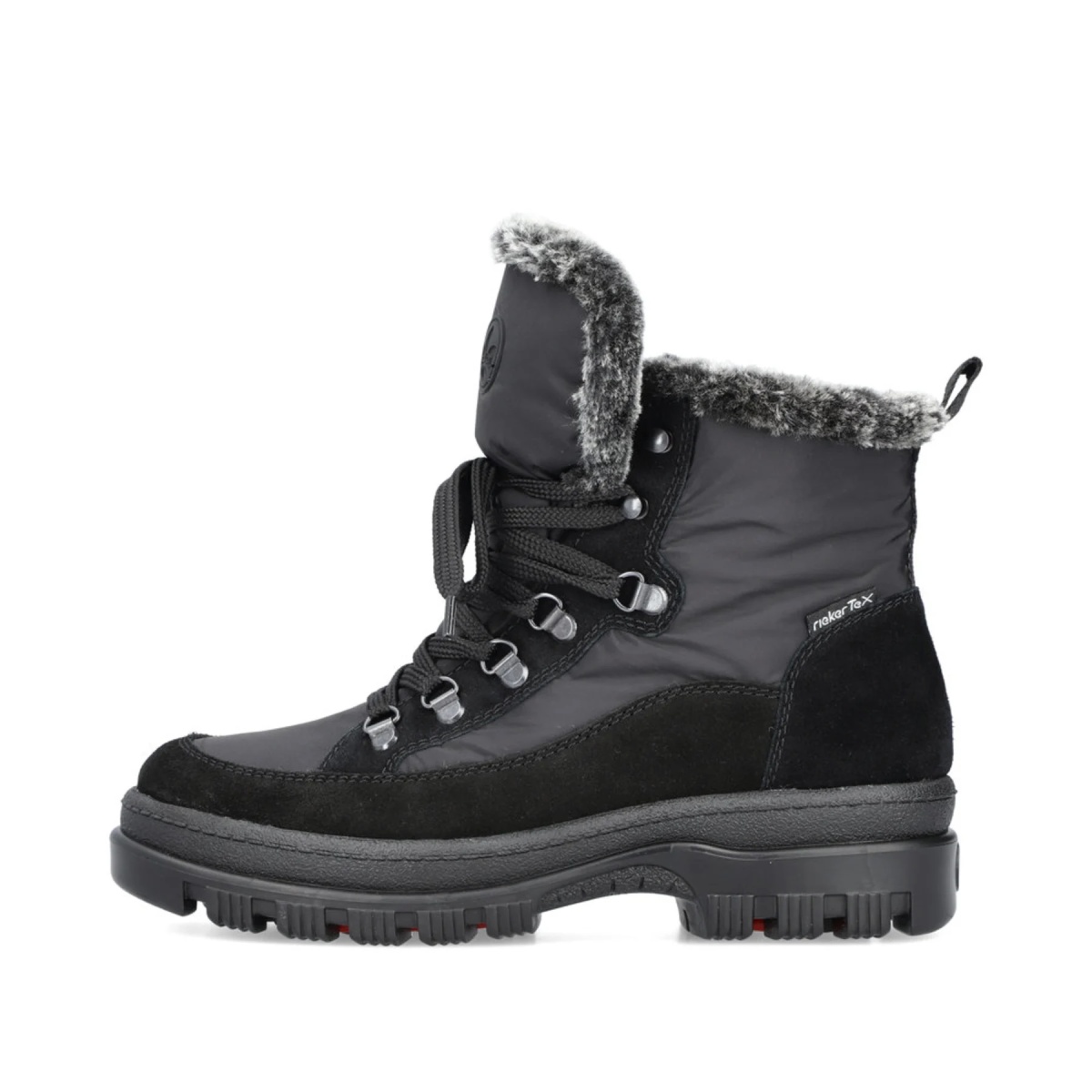 • diese nachtschwarzen Schnürstiefel mit winterlichem, mittelhohem Kunstfellschaft von Rieker überzeugen durch modernes Design und hohen Tragekomfort