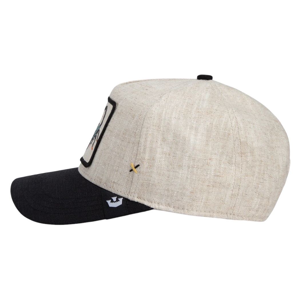 • das natürliche Leinen-Design trifft auf einen tiefschwarzen Schirm und macht diese Cap zum ultimativen Gift für alle Fashion-Jäger.