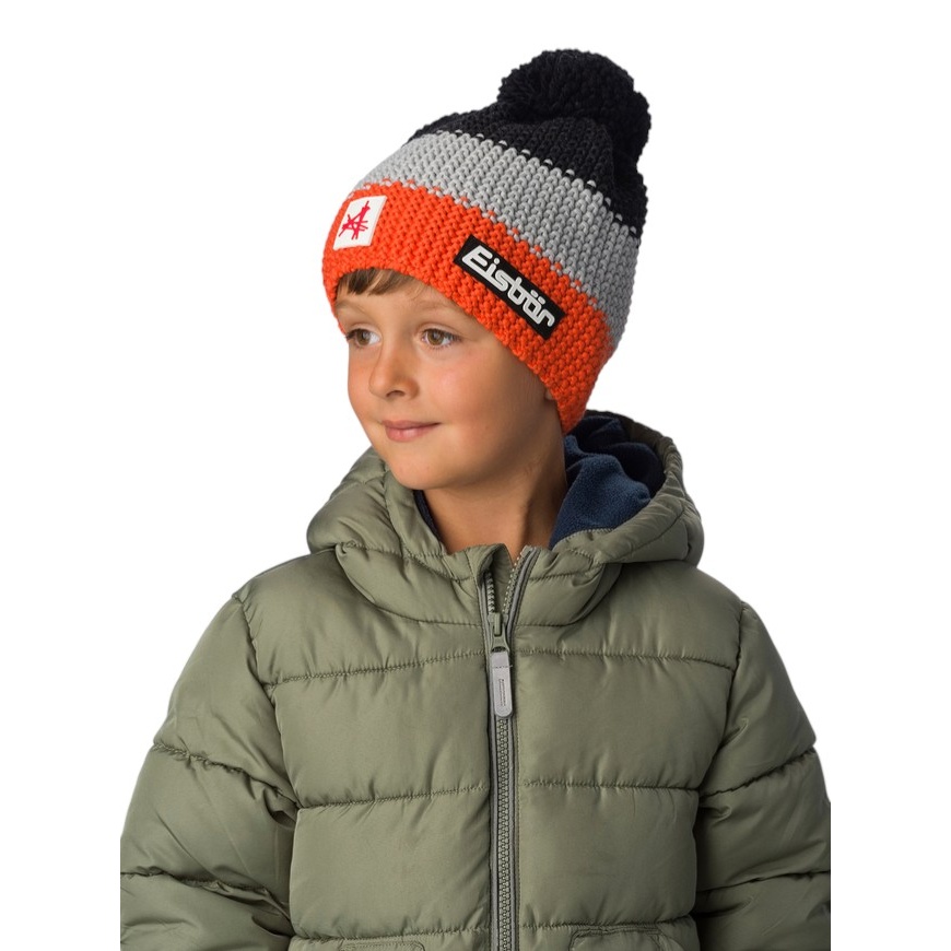 Eisbär Wintermütze (Pompon) Star SA Kinder - orange/schwarz/grau - 1 Stück