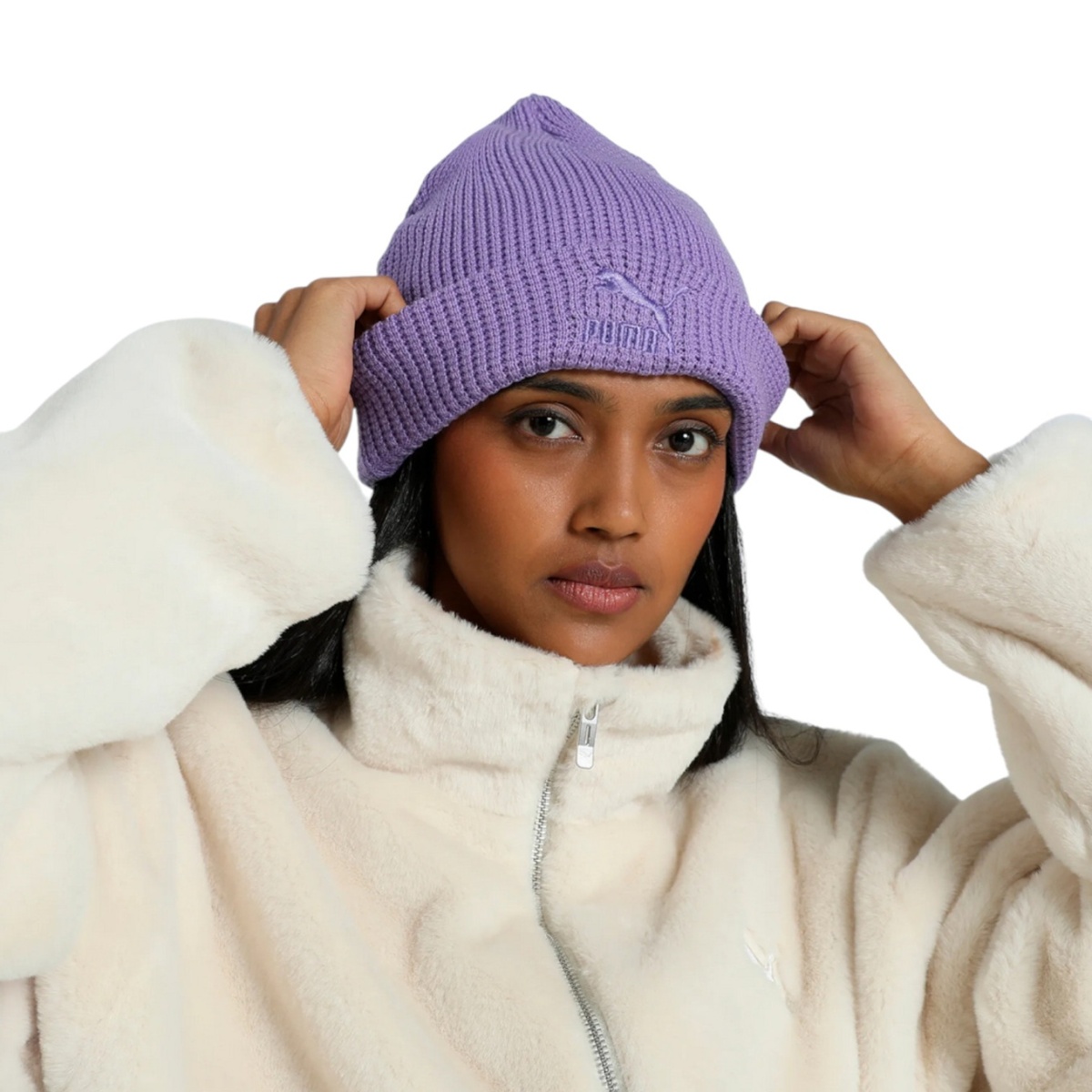 • beanie aus Waffelstrick mit umgeschlagener Krempe 4 Abnäher oben Satinbesticktes PUMA Archive No.1-Logo auf der Vorderseite