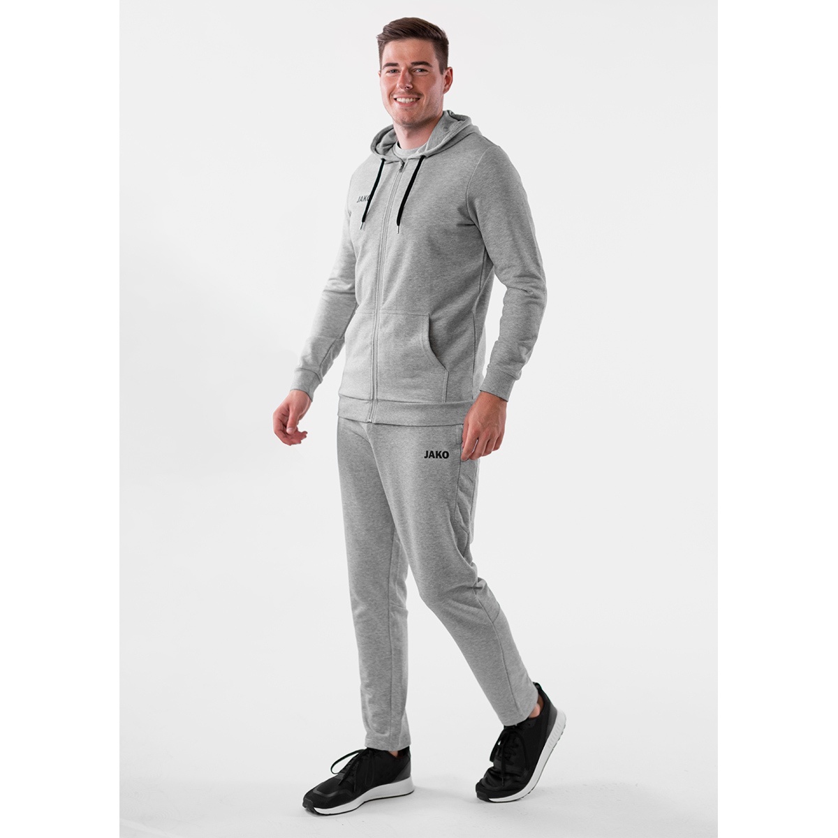 JAKO Freizeit-Kapuzenjacke Base (70% Baumwolle) hellgrau Herren