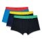 • drei dunkelblaue Boxershorts, dazu knallige Bundfarben in Grün, Blau und Rot – ein echtes Statement unter der Gürtellinie.
