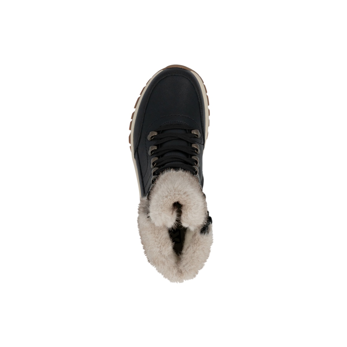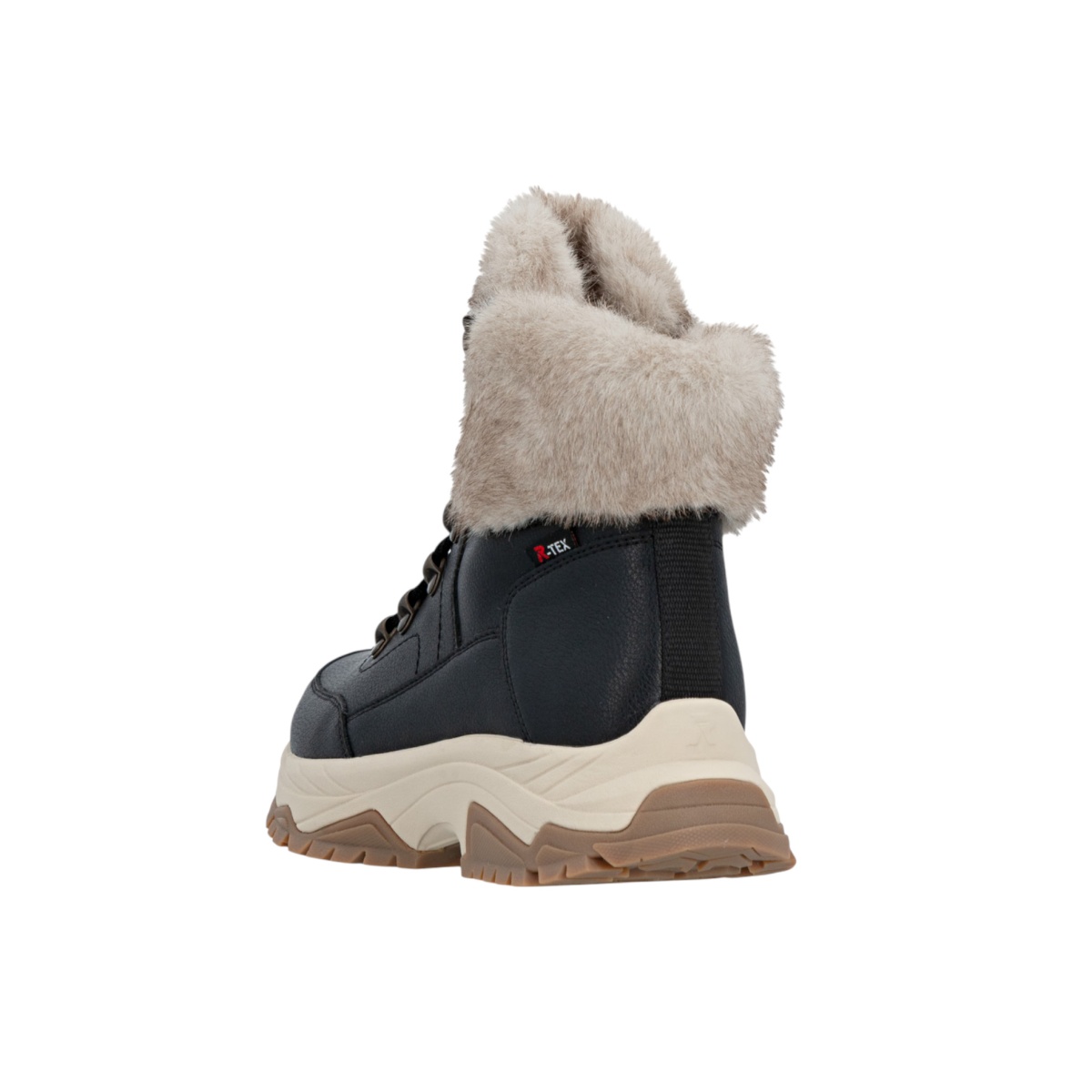• diese schwarzbeigen Rieker Schnürstiefel für Damen aus Glattleder wurden aufwendig verarbeitet.