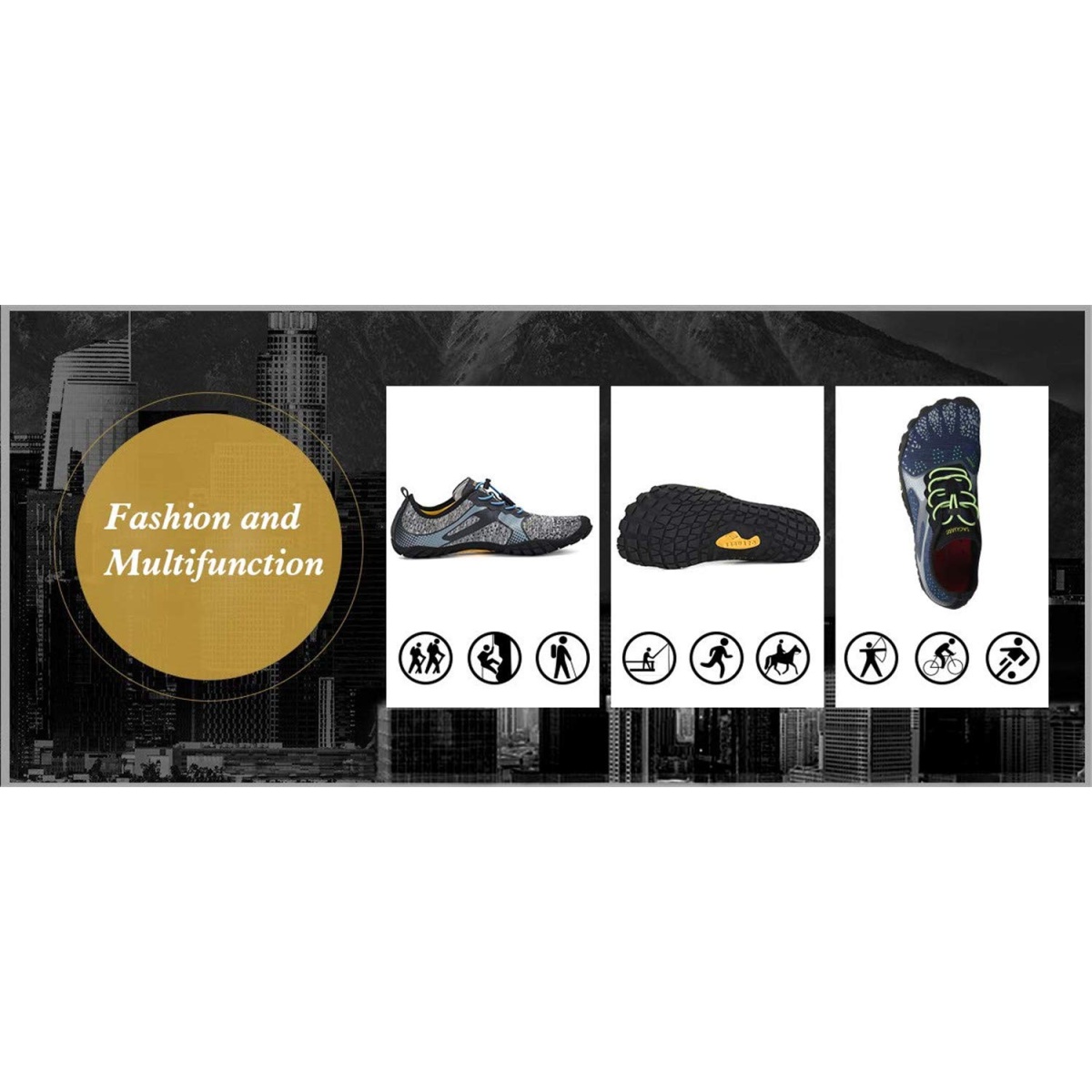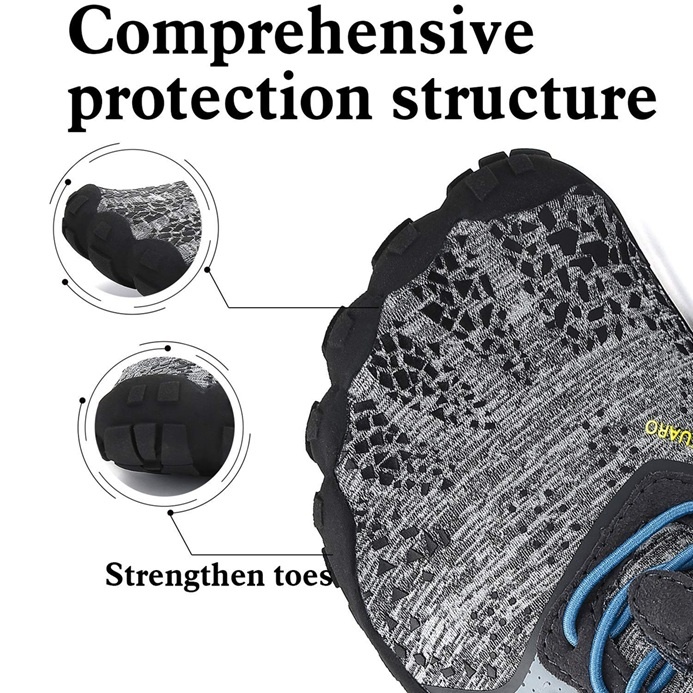 • Breite Zehenbox: bietet ausreichend Platz für die natürliche Spreizung der Zehen und verbessert Stabilität sowie Gleichgewicht
