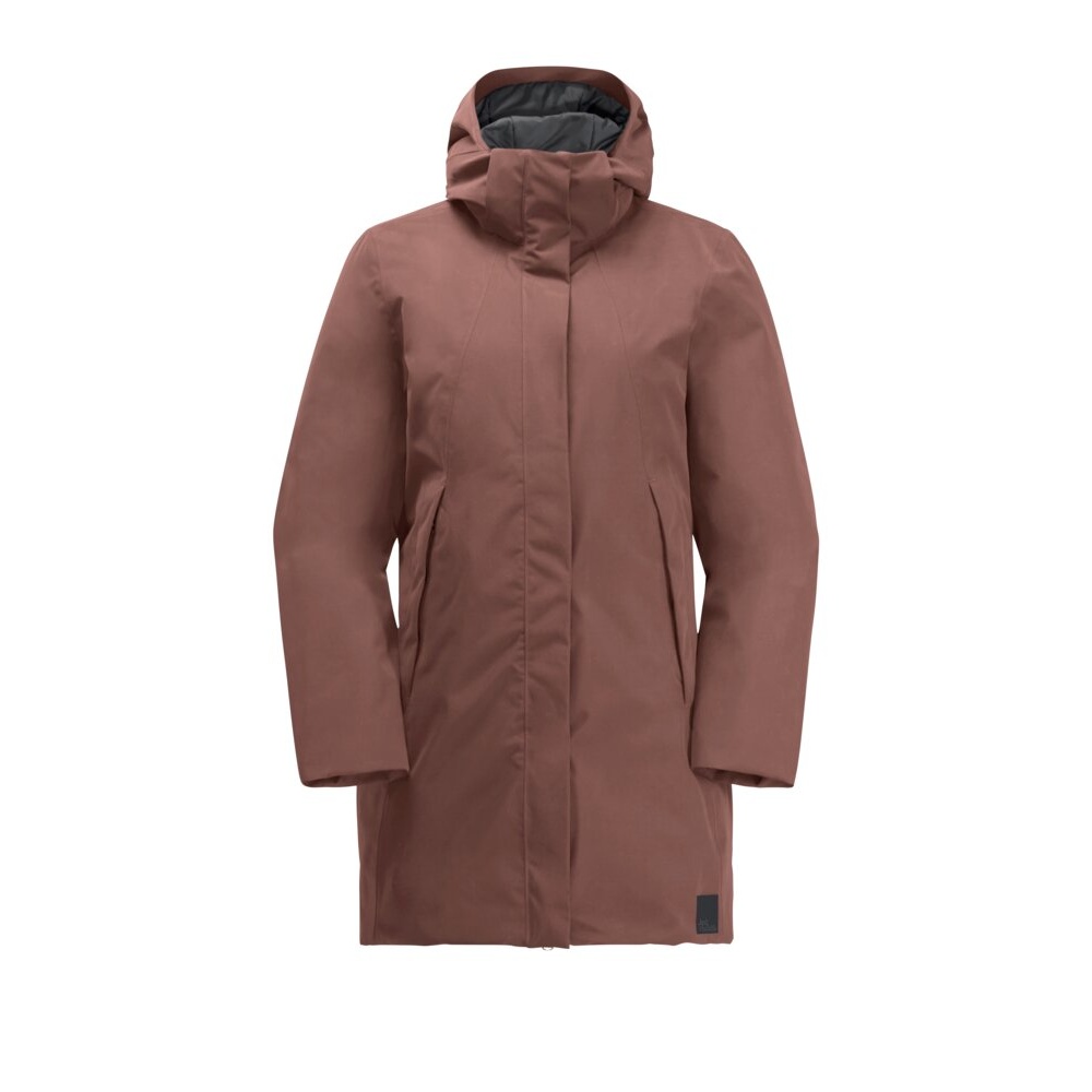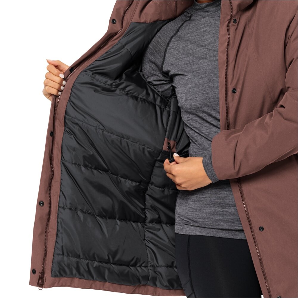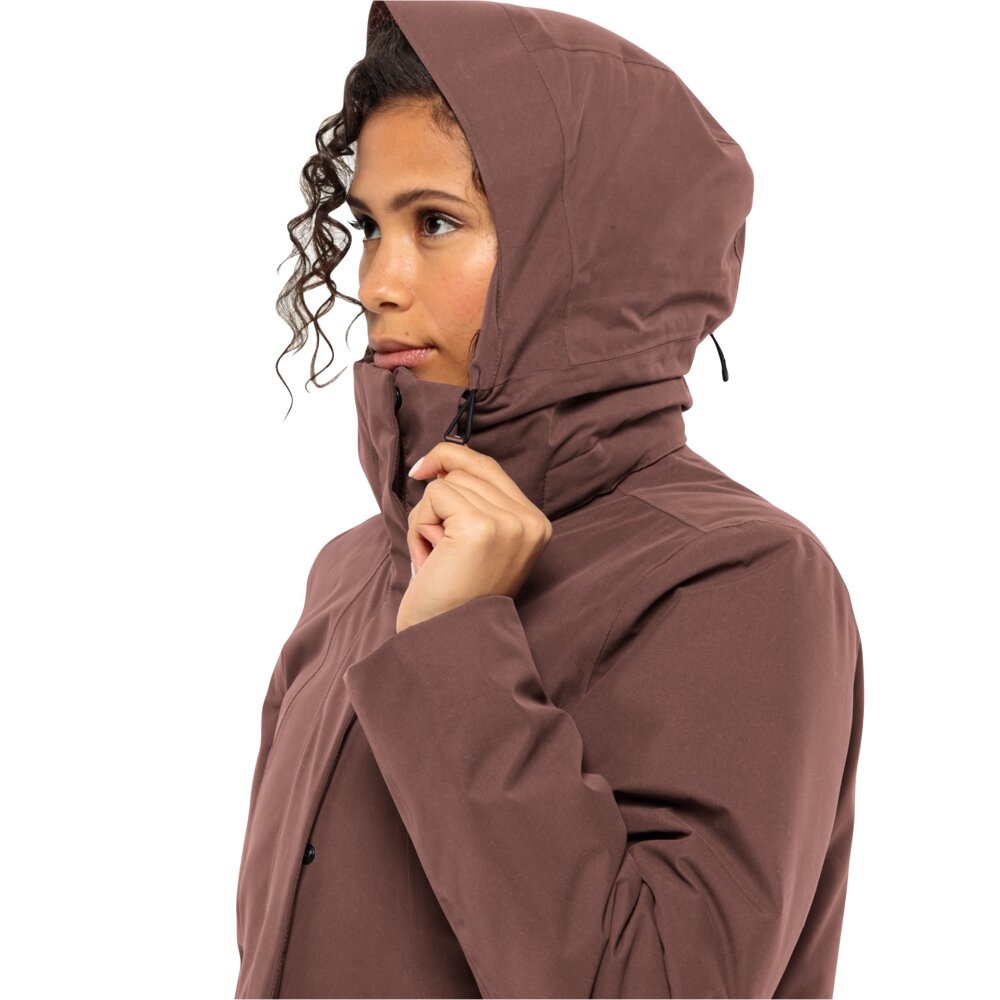 Jack Wolfskin Wintermantel Salier Coat (abnehmbare Kapuze, wasser- und winddicht) rotbraun Damen