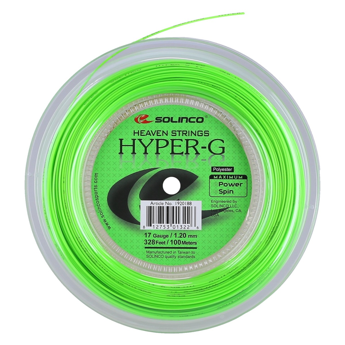 Solinco Tennissaite Hyper G (Haltbarkeit+Power) grün 100m Rolle