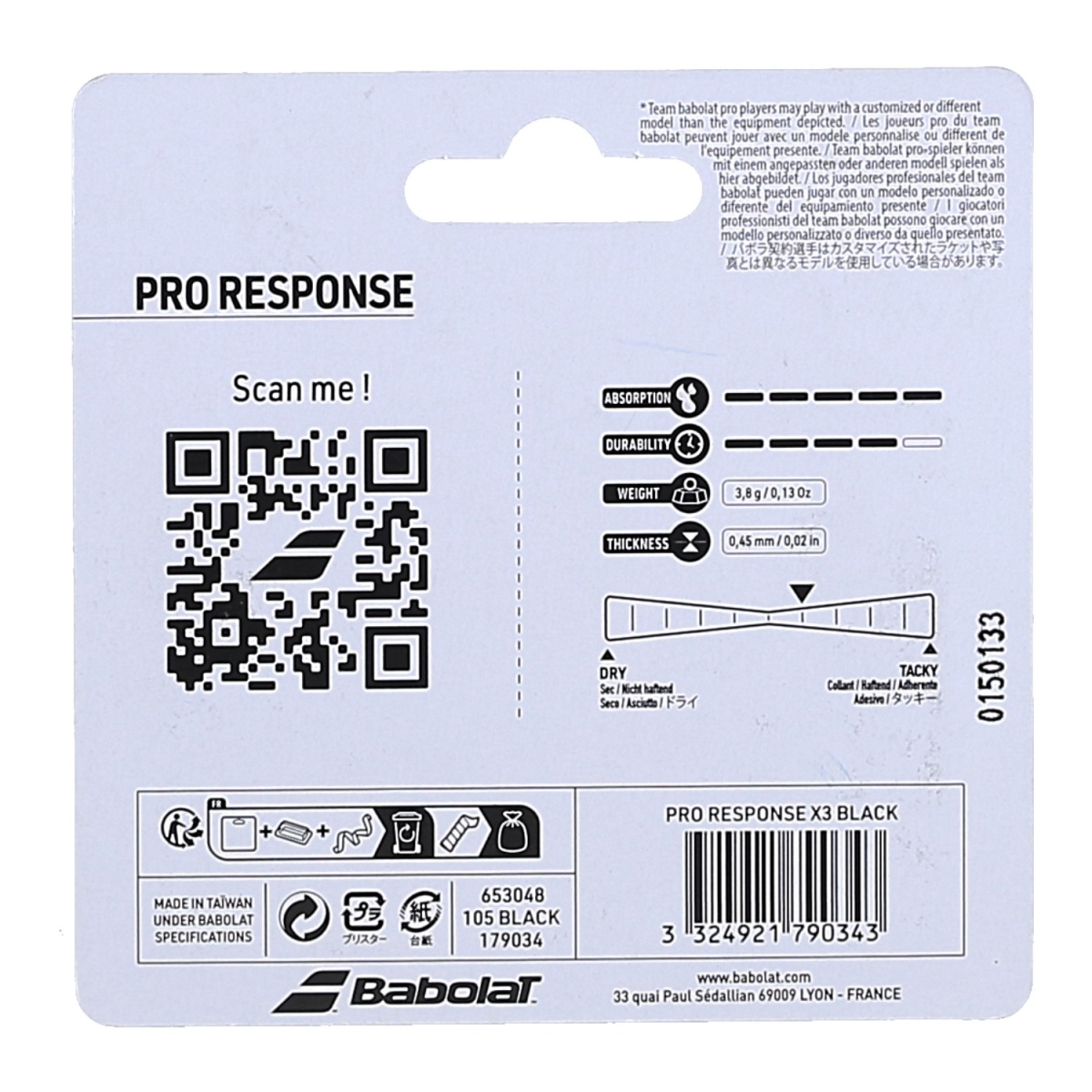 Babolat Overgrip Pro Response (hohe Feuchtigkeitsabsorption) 0.45mm schwarz 3er