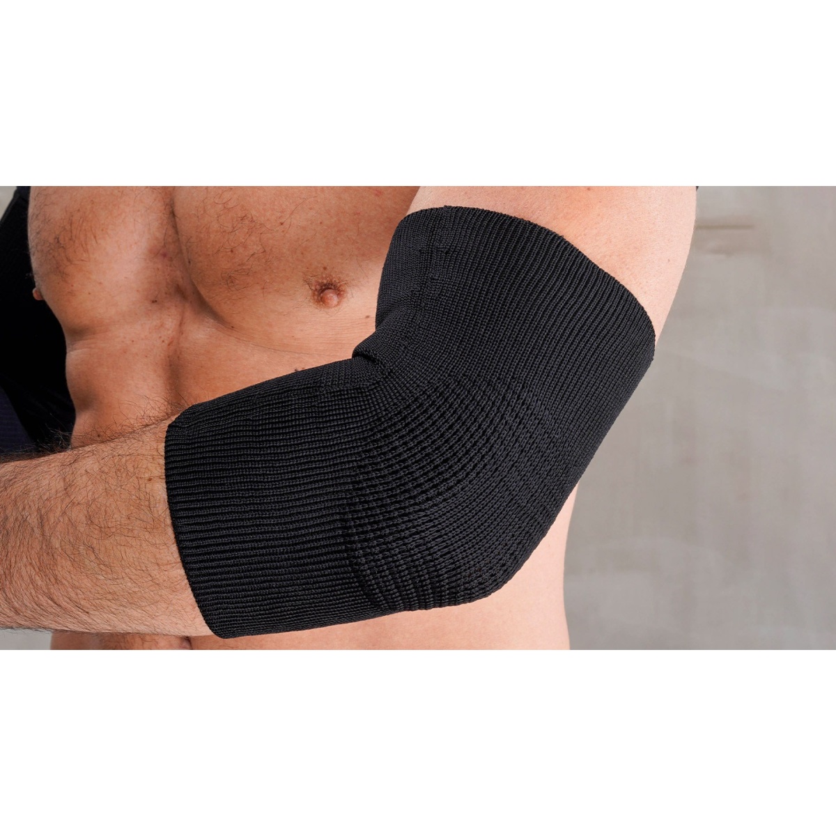 • die ergonomische Ellenbogenbandage  mit differenzierter Kompression und der FIR Infrarot Faser dient als Stütze, Schutz und Halt bei Sprunggelenkverletzung oder zur Vorbeugung.
