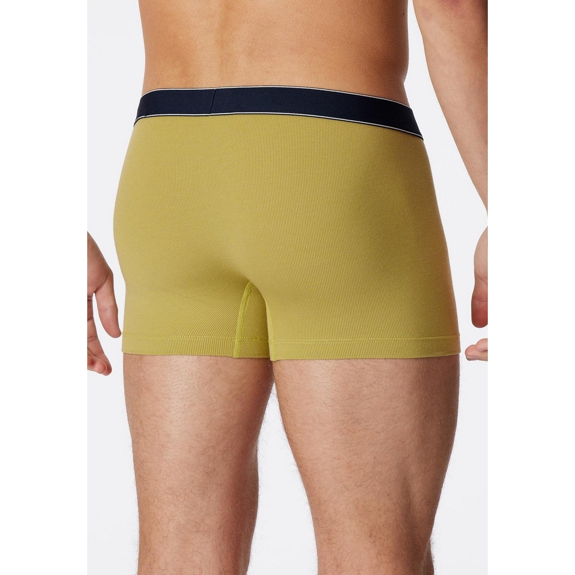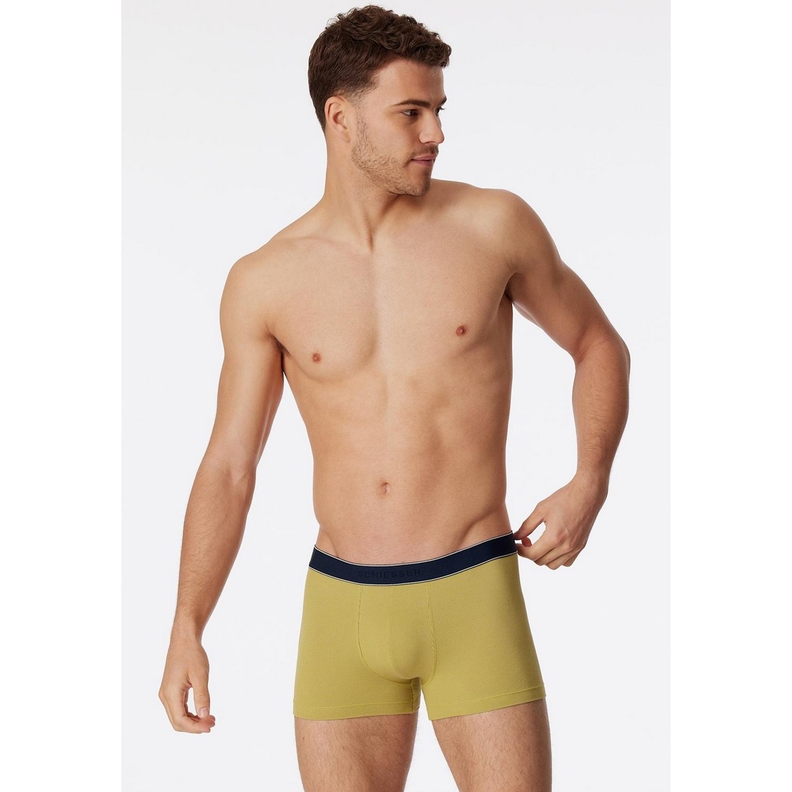 • farblich abgesetzter Webgummibund mit zwei weißen Streifen und SCHIESSER Aufdruck
