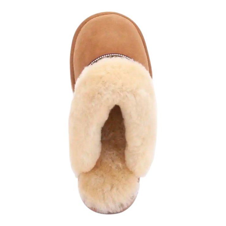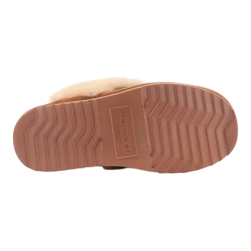Warmbat Hausschuhe Pantoffel Flurry Suede Tape mit Merino Schaffell cognac braun Damen